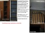 Bookshelf With Door: 6 feet, 4-5 Shelves, Dark Brown, Wooden. In perfect shape. $40 Futon: Steel frame. In perfect shape. Cushion without any stains, looks new. Blue cover machine washable: $50. Study Table: Wooden, with 1 rack, 2.5ft (height) by 4ft (length) by 1.75 ft (width). $10 Computer Swivel chair: $5.
