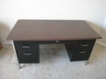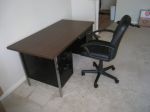 2) Heavy Duty Big Metal Office Table with wooden top, with drawers on both side and a keyboard drawer in center with reclining Leather Chair in very good condition for $45. Dimensions of Table: 60inch Long X 30inch Wide X 28inch Tall